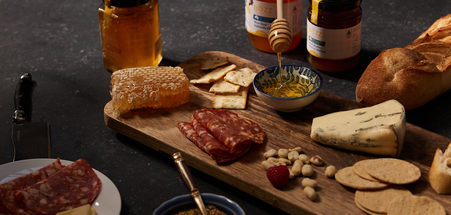 Straight from our hives, Buzz Honey Honeycomb is just as you would find it in the hive – chewy and bursting with sweetness and nutrients. Submerged and preserved in honey, the delicate golden comb is the ideal indulgent garnish for desserts, platters and cheese pairing.